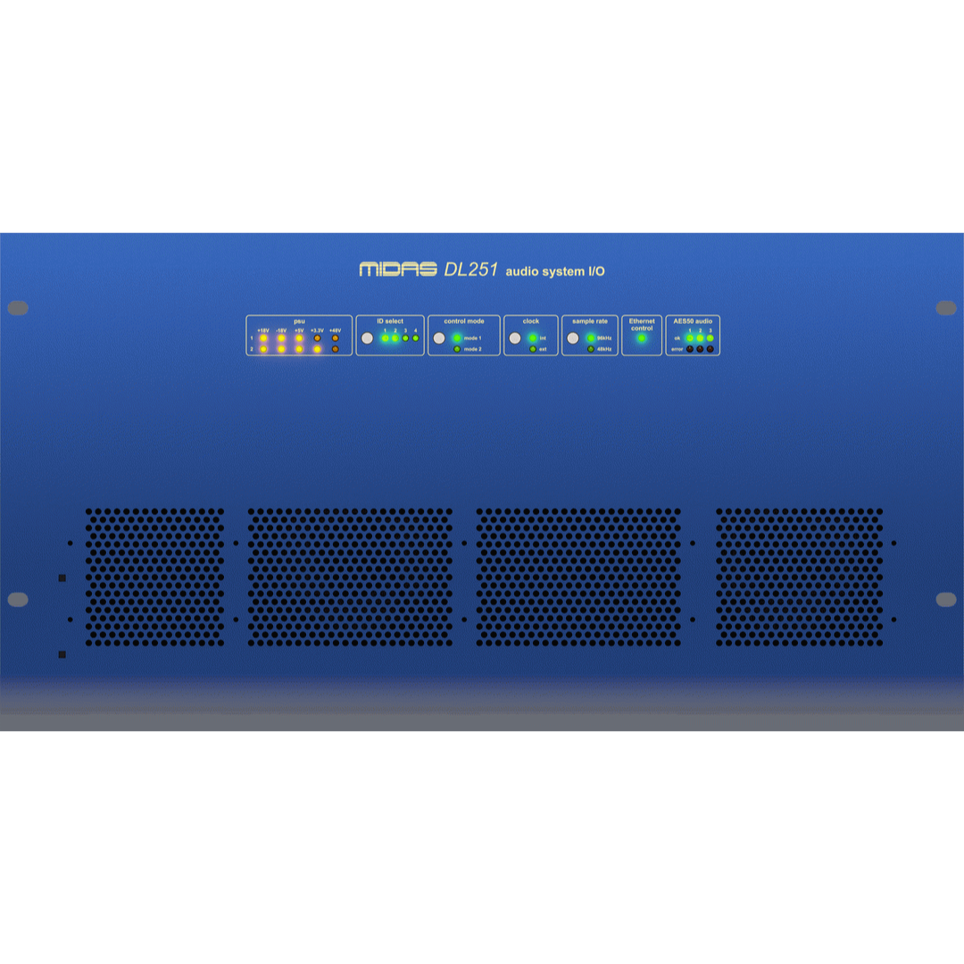 Midas MDS-DL251 is a robust 48-input, 16-output stagebox designed to deliver pristine audio quality and networked control in live sound and broadcast applications. With selectable 48kHz or 96kHz sample rate operation, this unit integrates seamlessly into Midas digital systems and supports remote configuration up to 100 meters away via standard CAT5/5e cable.